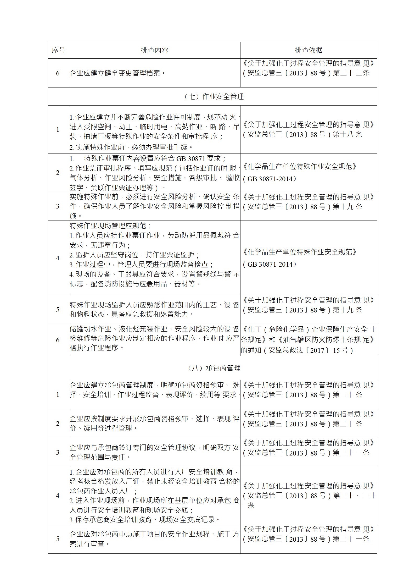 (1) 《化學品生產單位特殊作業(yè)安全規(guī)范》(GB 30871)規(guī)定的 動火、進入受限空間、盲板抽堵、高處作業(yè)、吊裝、臨時用電、動 土、斷路等特殊作業(yè);