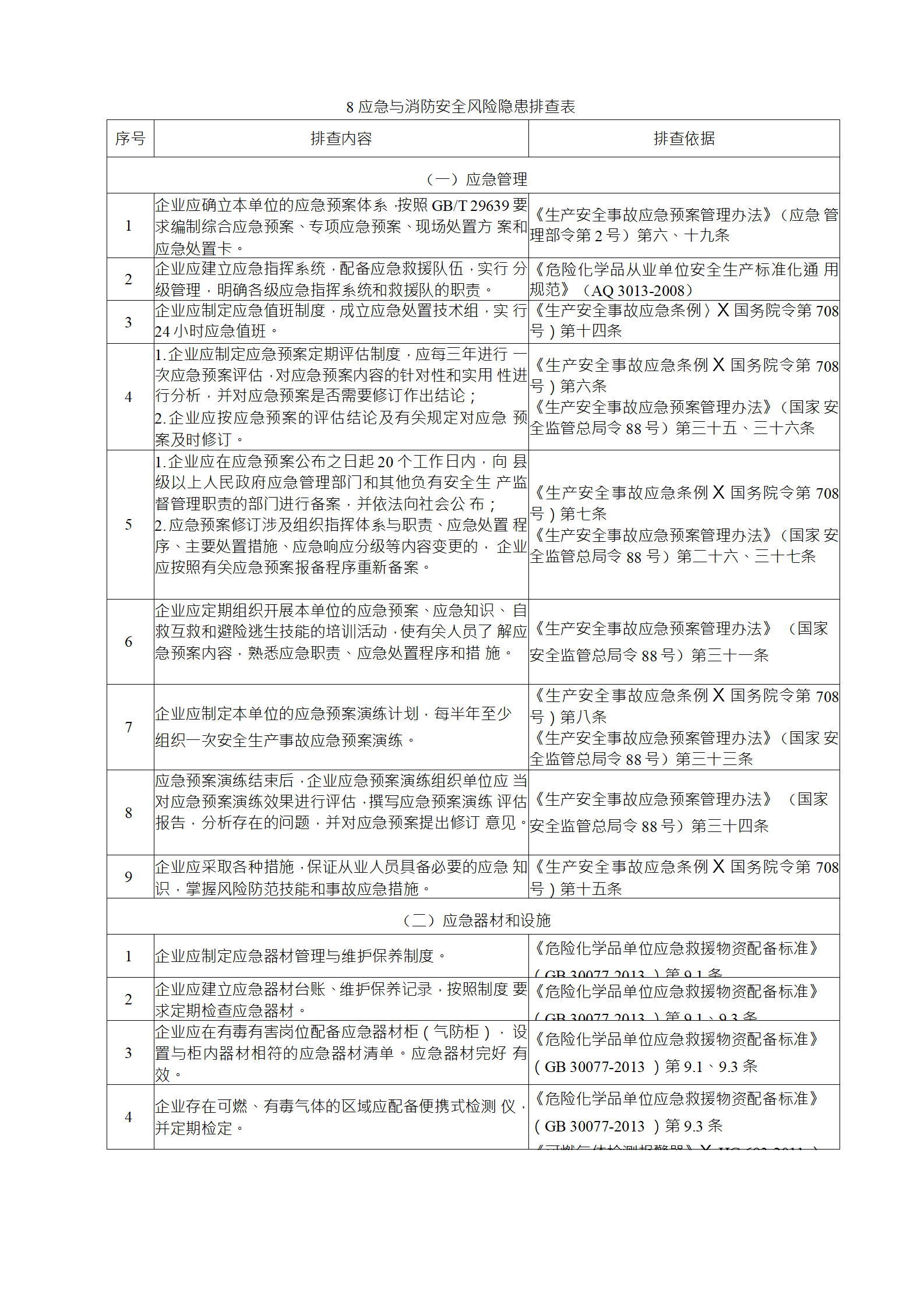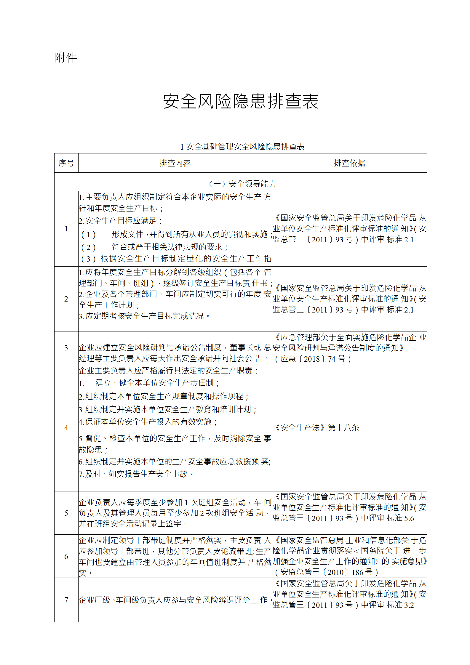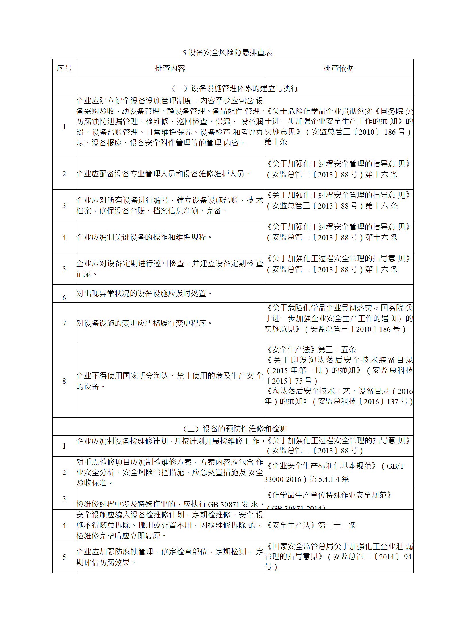 企業(yè)應結合自身安全風險及管控水平,按照化工過程安全 管理的要求,參照各專業(yè)安全風險隱患排查表(見附件),編制 符合自身實際的安全風險隱患排查表,開展安全風險隱患排查 工作。