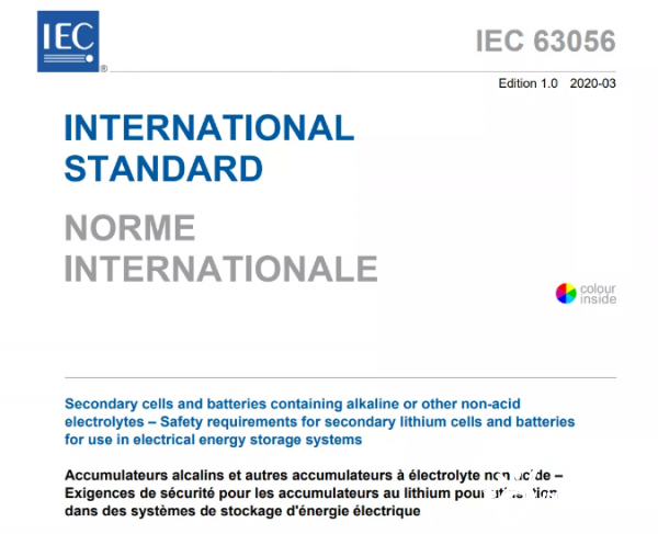 據(jù)IEC官網(wǎng)消息,IEC 63056:2020 《Secondary cells and batteries containing alkaline or other non-acid electrolytes - Safety requirements for secondary lithium cells and batteries for use in electrical energy storage systems》于2020年3月27日正式發(fā)布。IEC 63056:2020由IEC/SC21A歸口,其下設(shè)的WG5工作組負責制定。