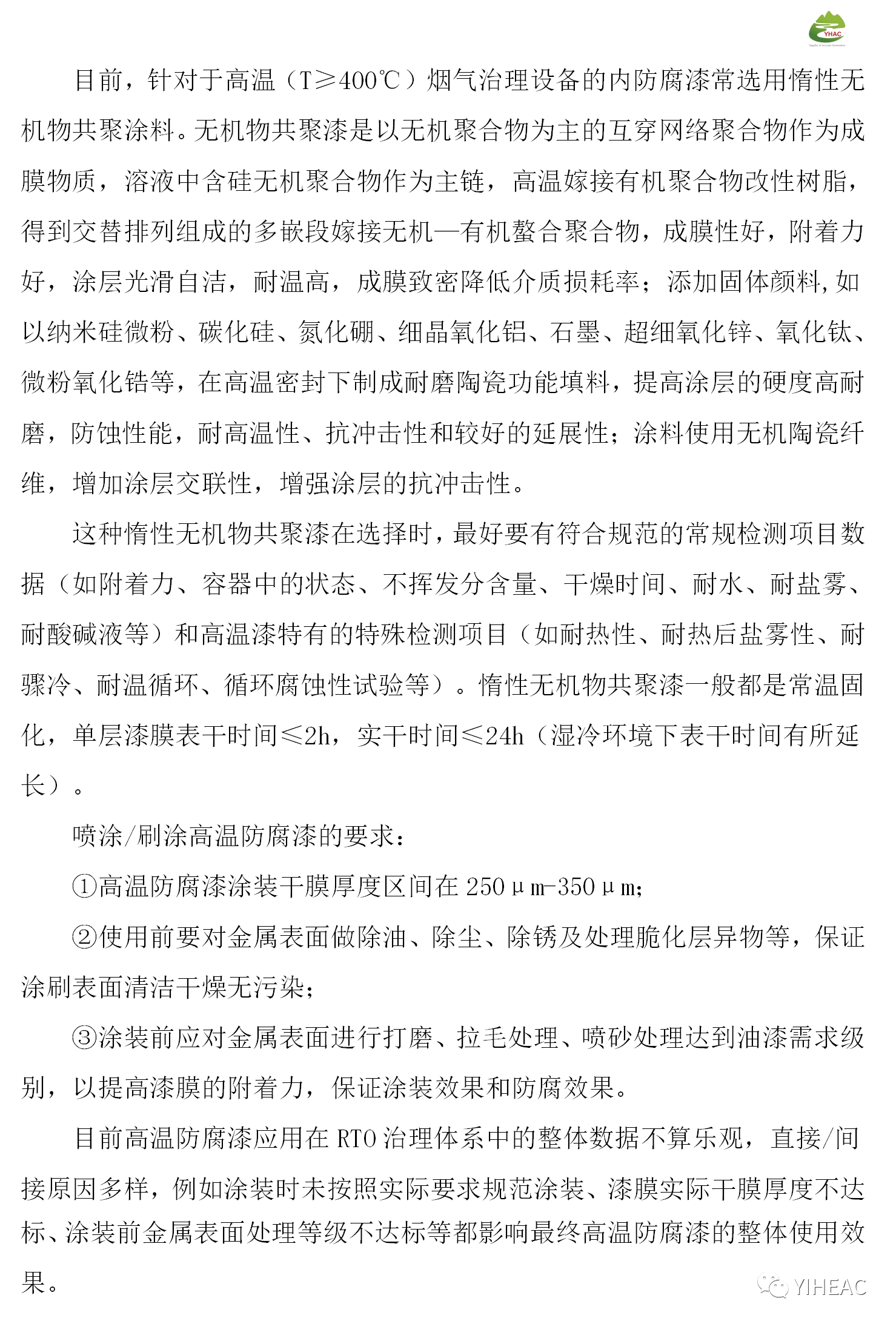 RTO系統(tǒng)腐蝕性場合及防腐涂料選擇