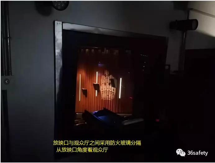 以下展示的2張照片,是在另外一個(gè)電影院(某皇電影城)夾層的放映廳拍攝的照片,這個(gè)電影院的放映廳和觀眾廳之間采用防火玻璃分隔。