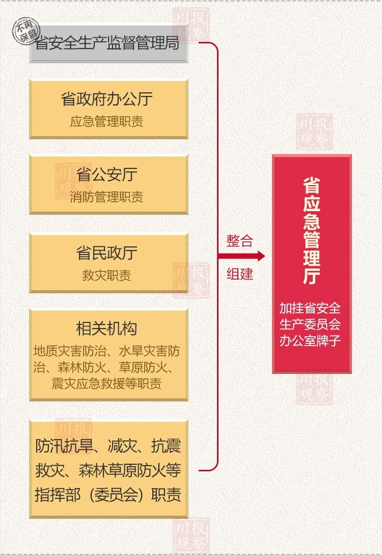 等整合,組建省應(yīng)急管理廳,作為省政府組成部門,加掛省安全生產(chǎn)委