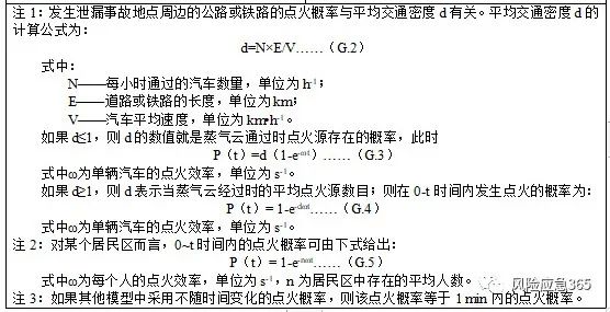 注1:對于可燃液體釋放,在到達地面前可能發(fā)生物質(zhì)的蒸發(fā)。如果蒸發(fā)氣立即點火將形成噴射火。噴射火的物質(zhì)量取決于蒸發(fā)氣中的物質(zhì)量。注2:在延遲點火時,除了閃火或爆炸,也將發(fā)生池火。