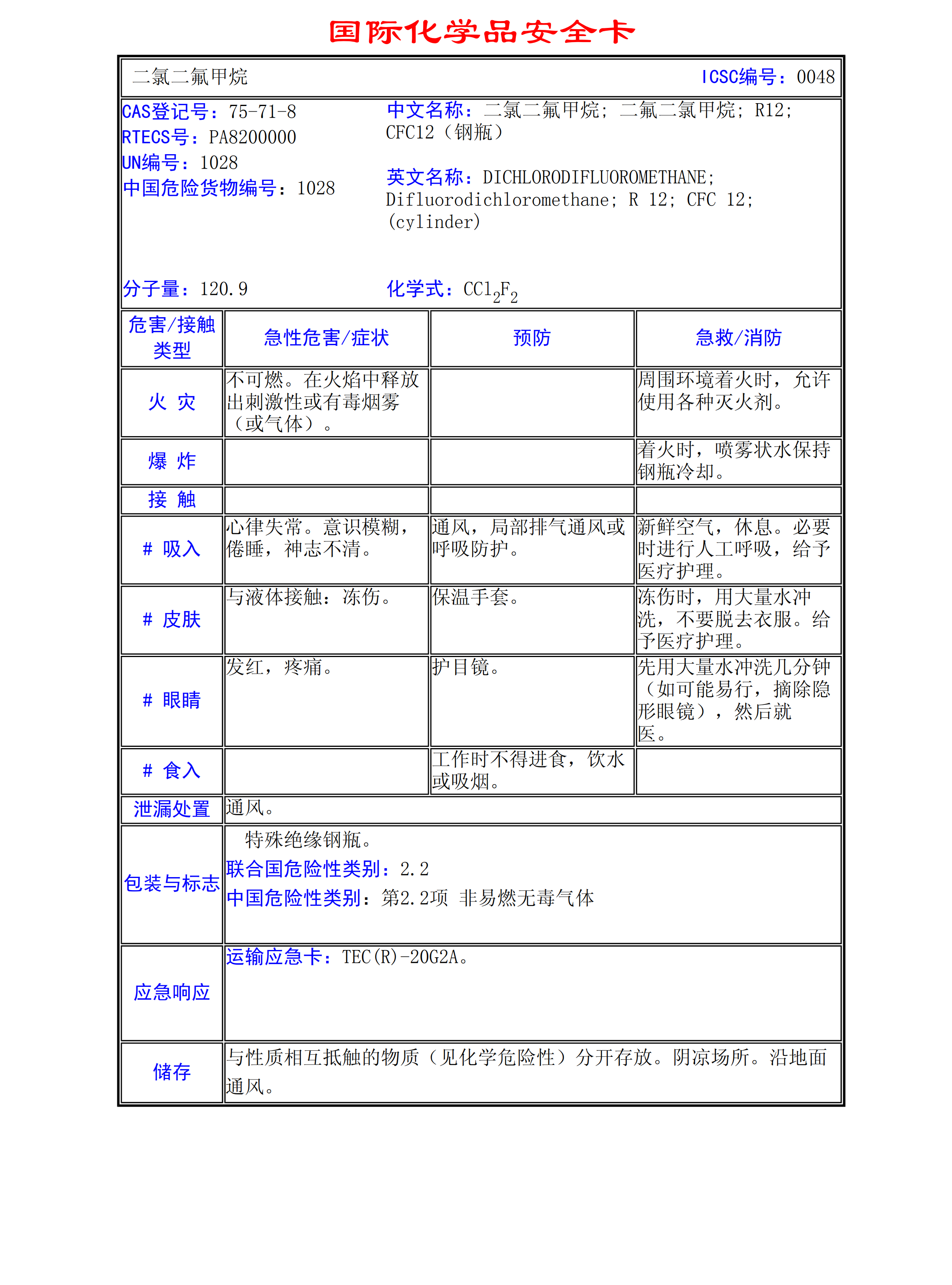 二氯二氟甲烷MSDS