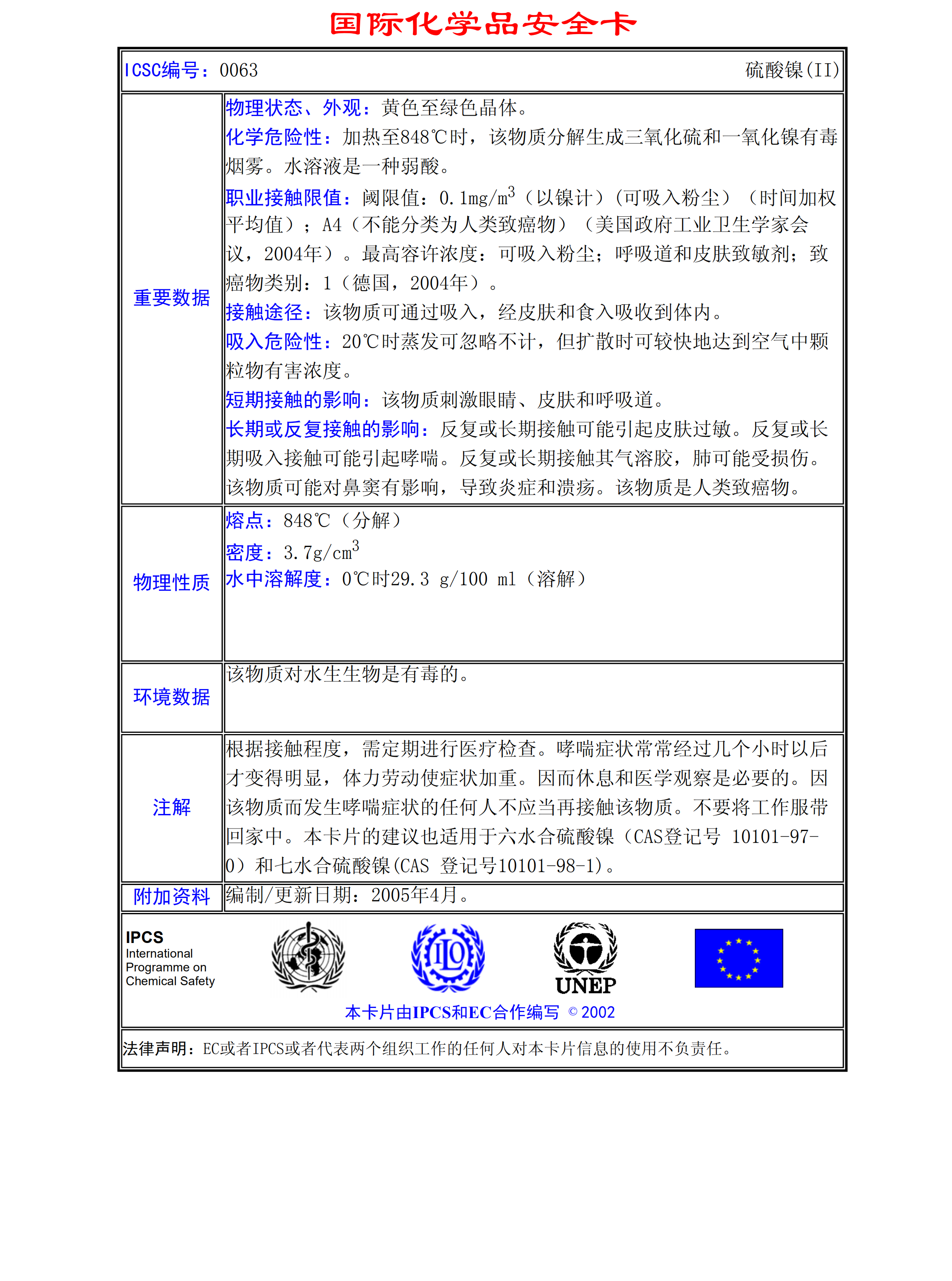 硫酸鎳(11)MSDS