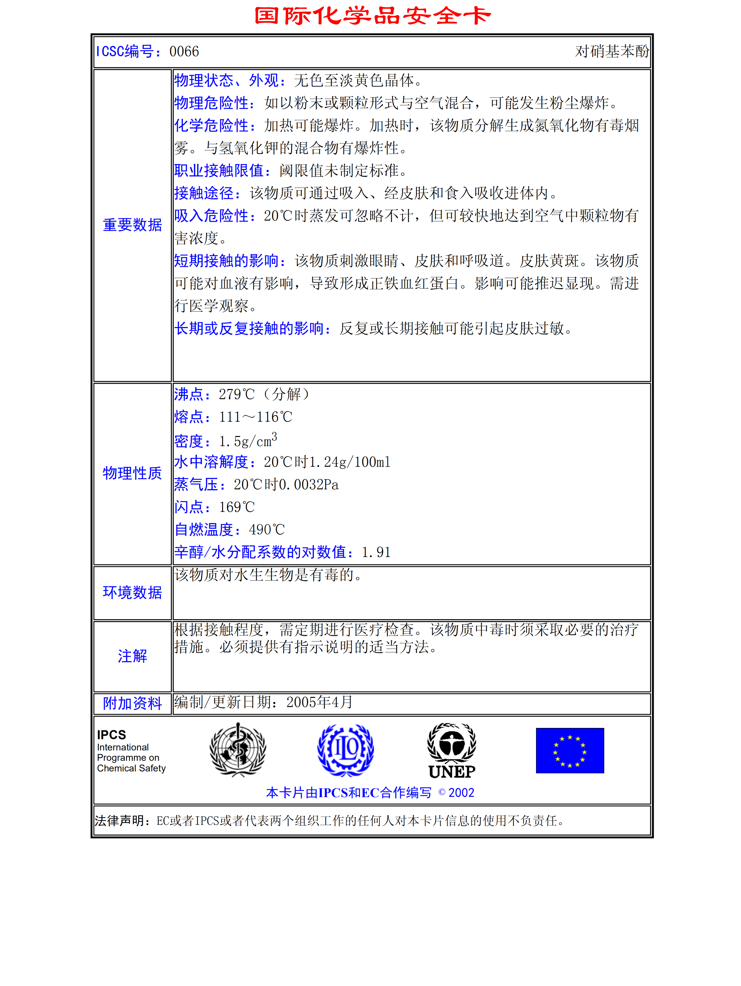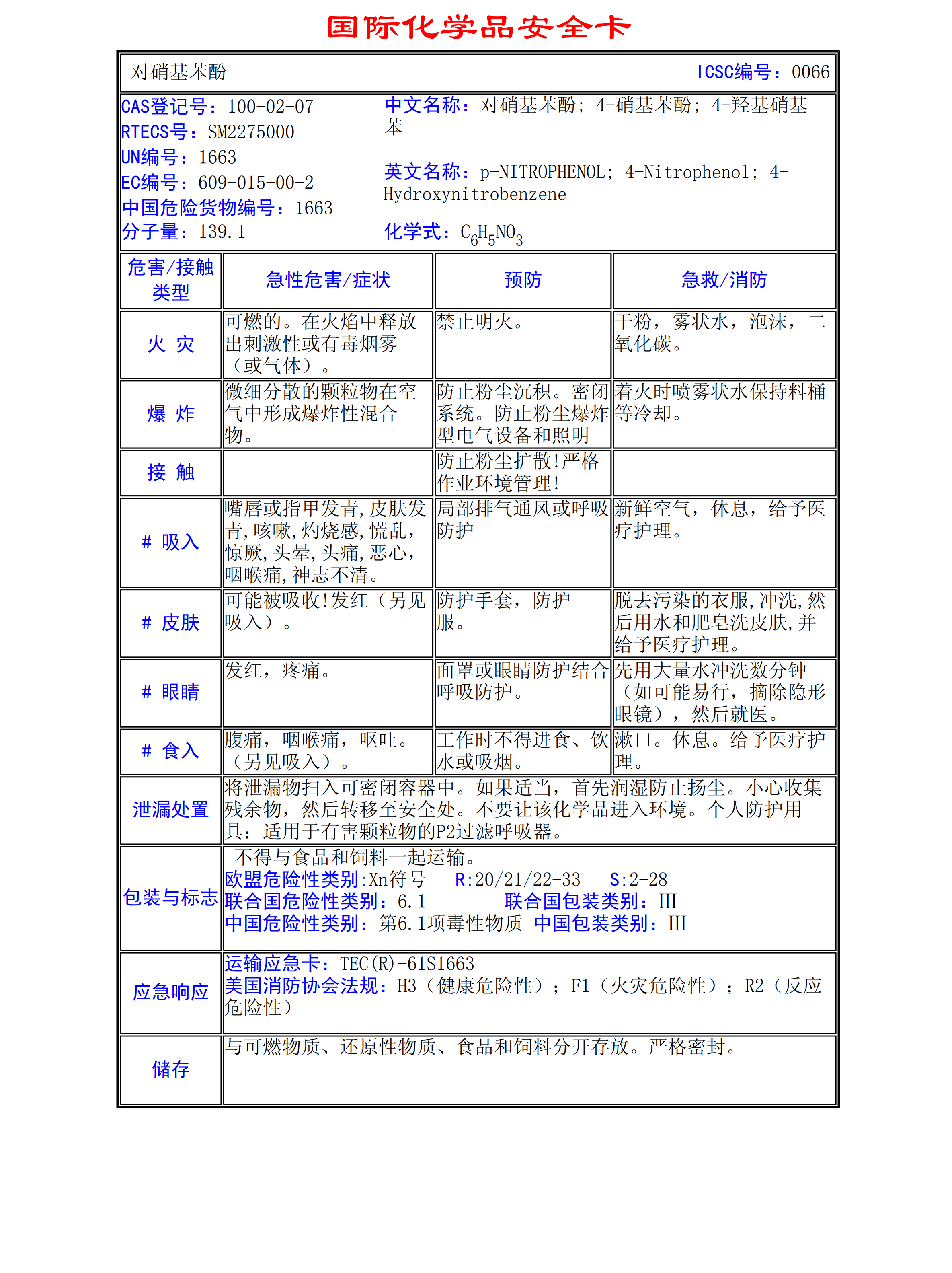 對(duì)硝基苯酚MSDS