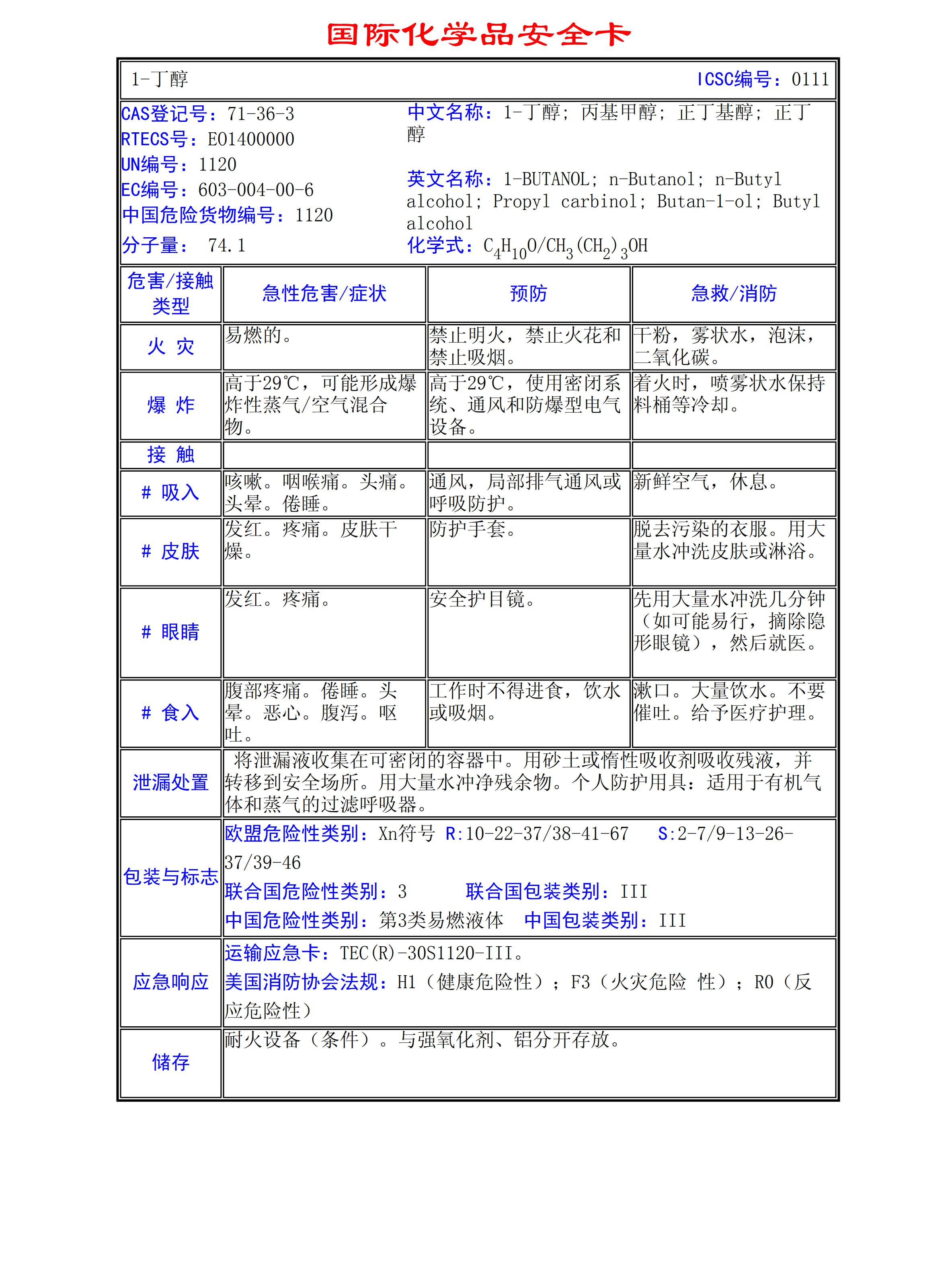 1-丁醇MSDS