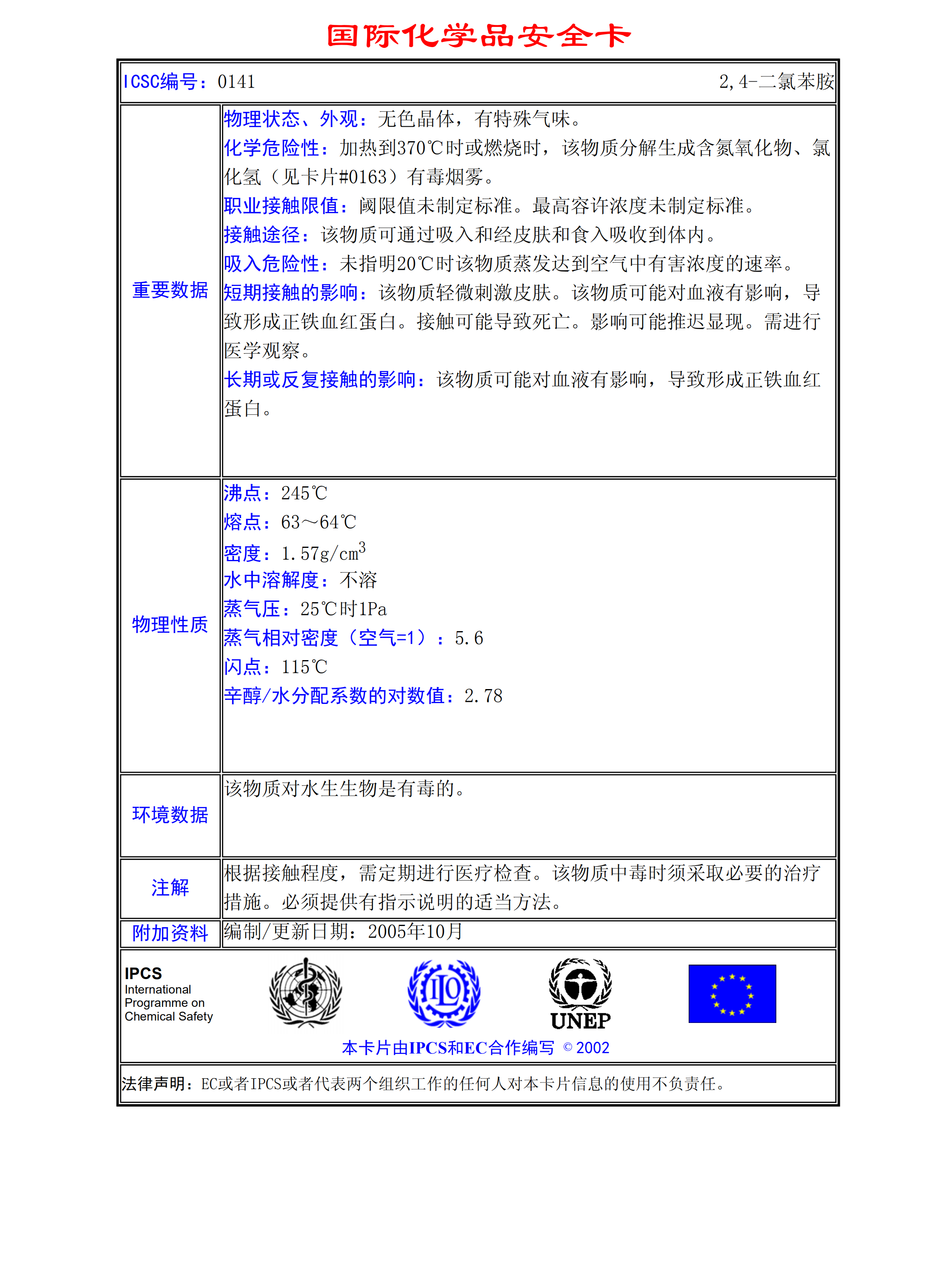 2,4-二氯苯胺MSDS