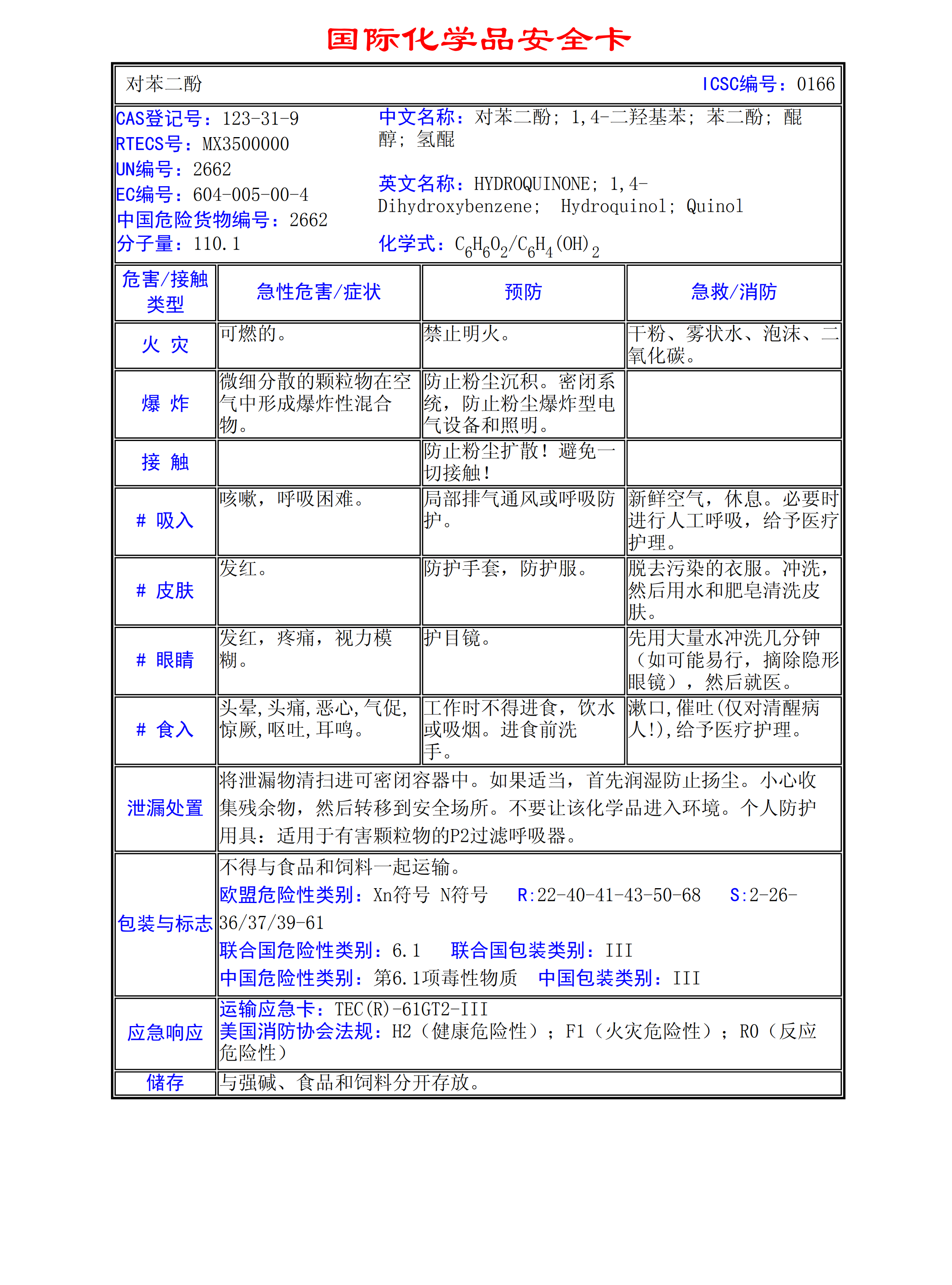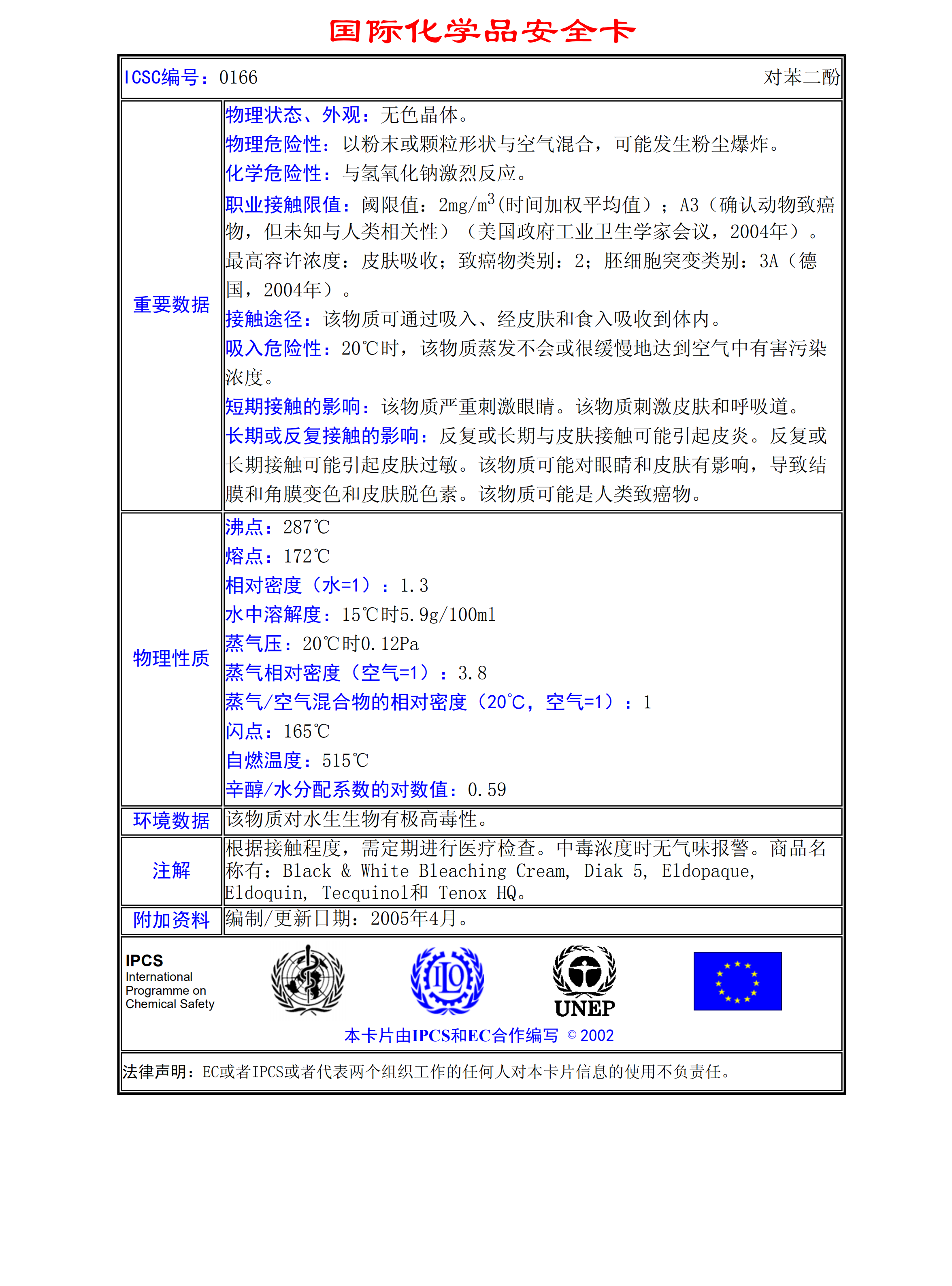 對(duì)苯二酚MSDS