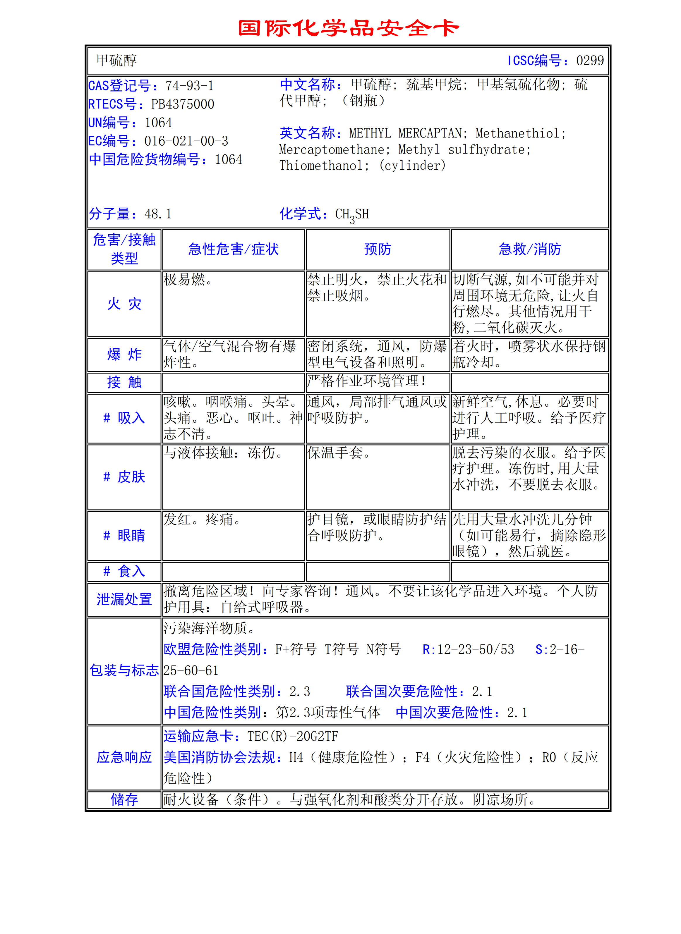 甲硫醇MSDS