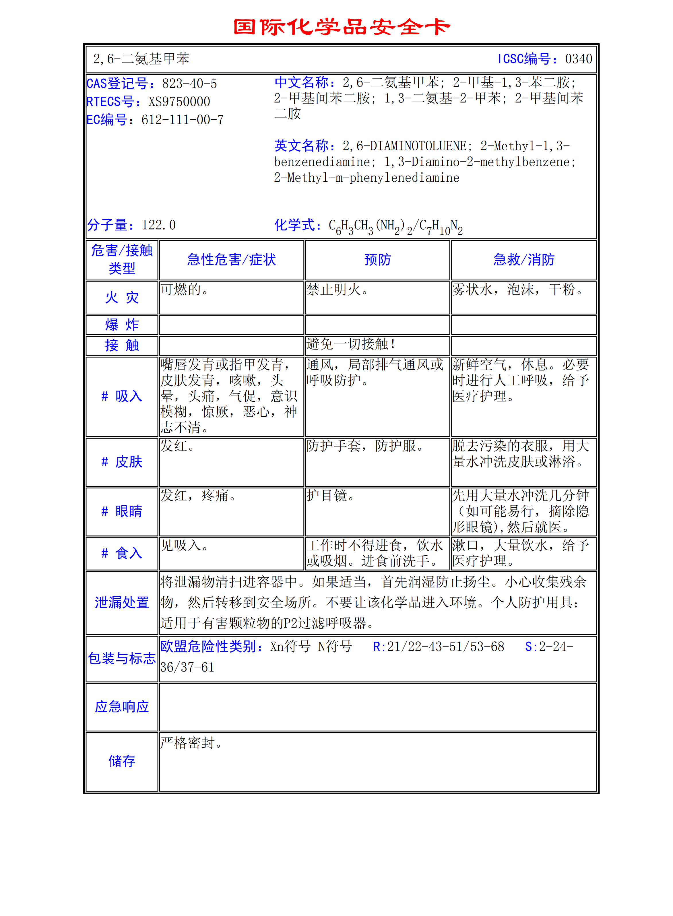 2,6-二氨基甲苯MSDS