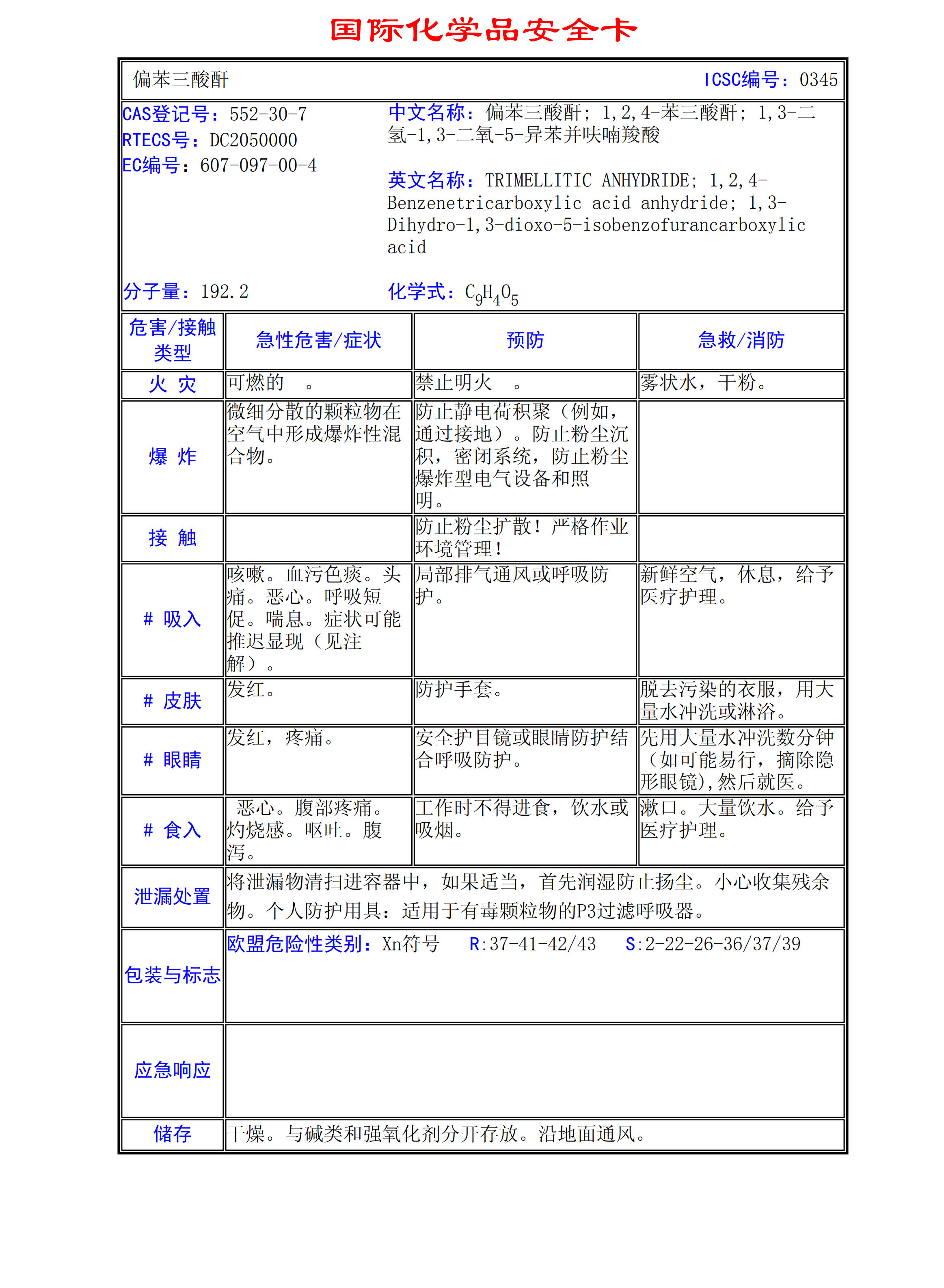 偏苯三酸酐MSDS