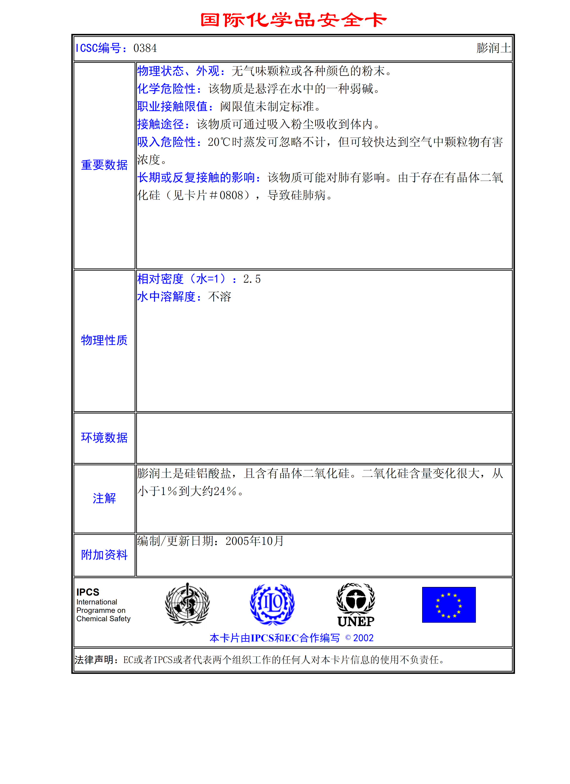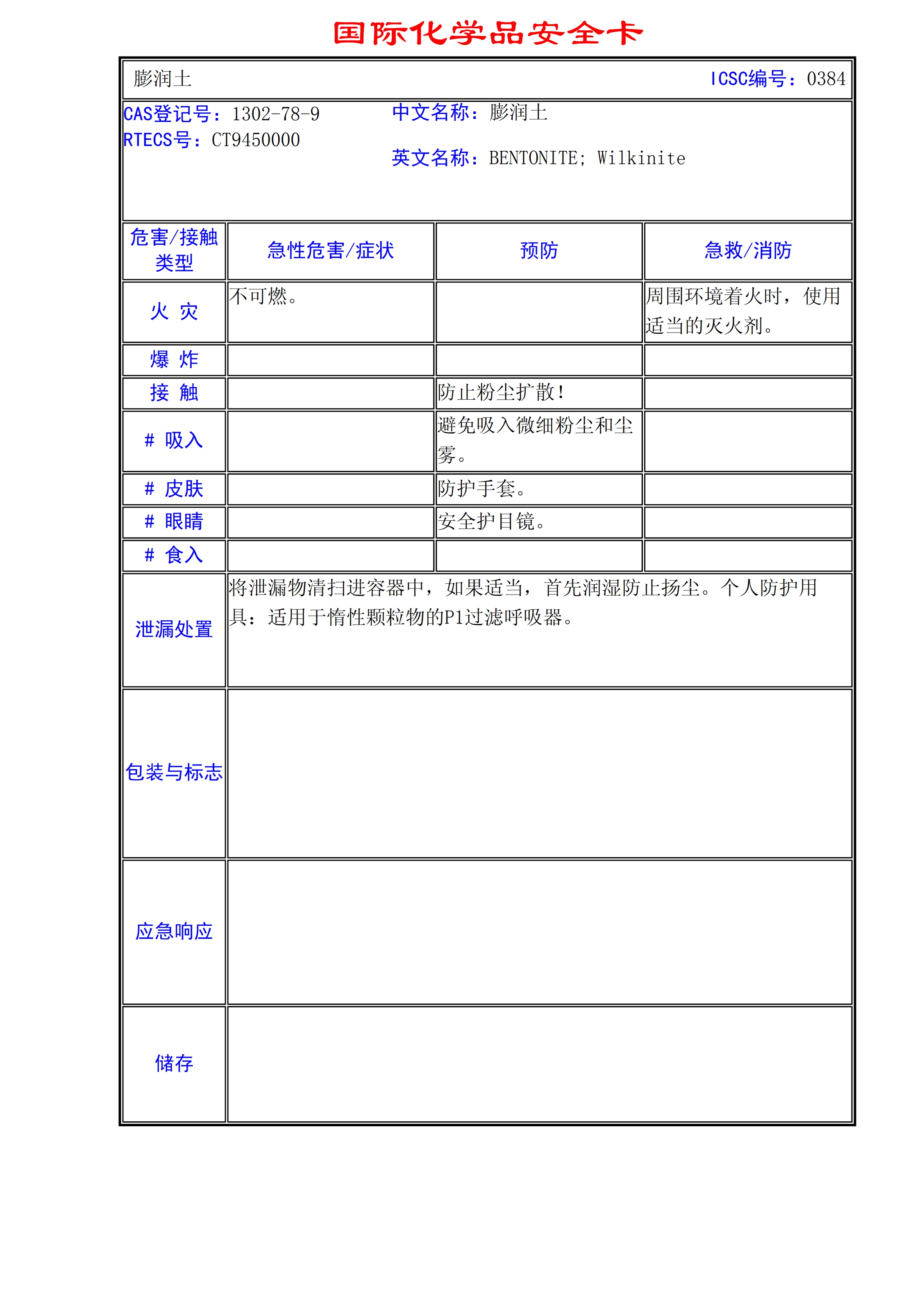 膨潤(rùn)土MSDS