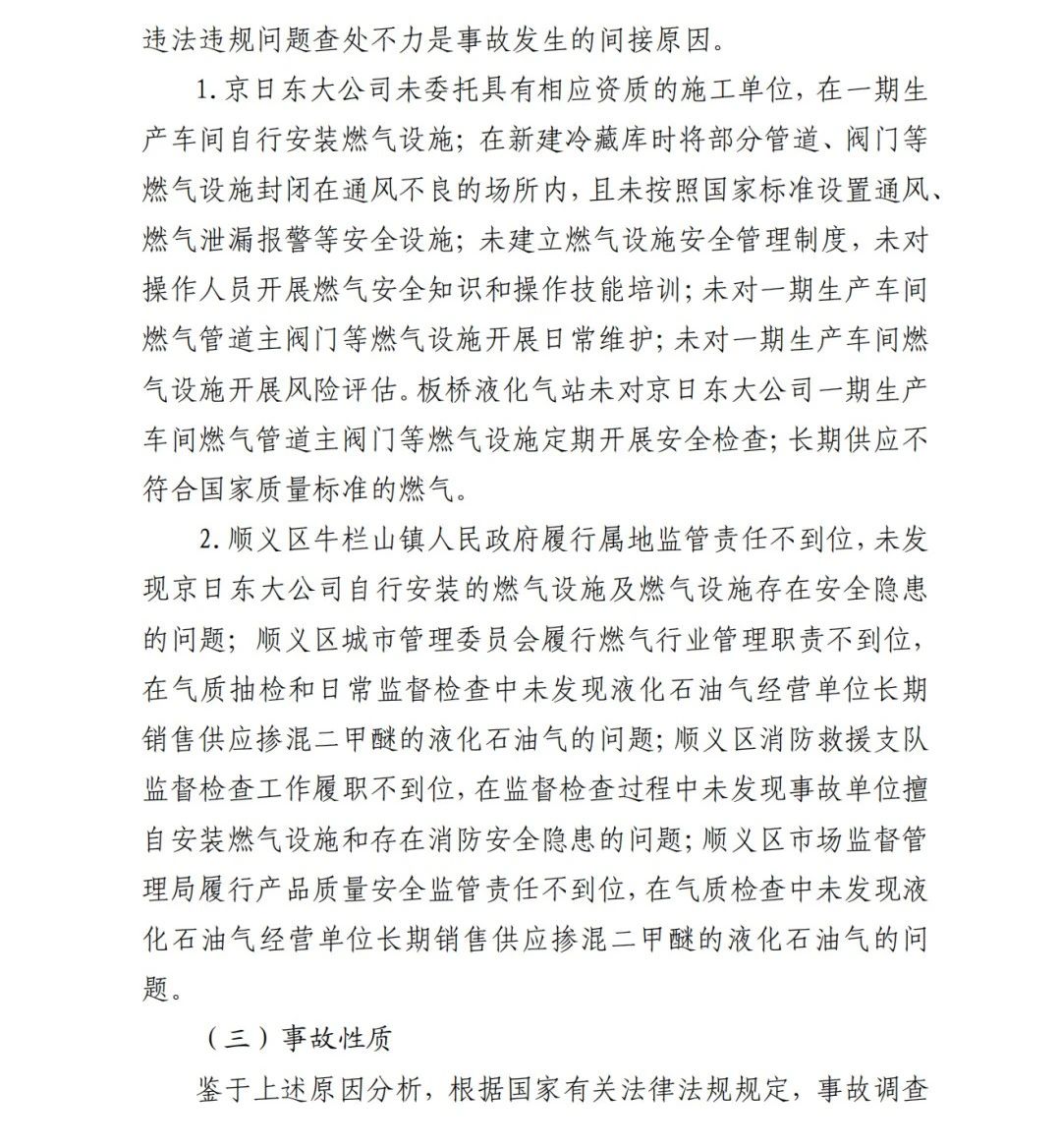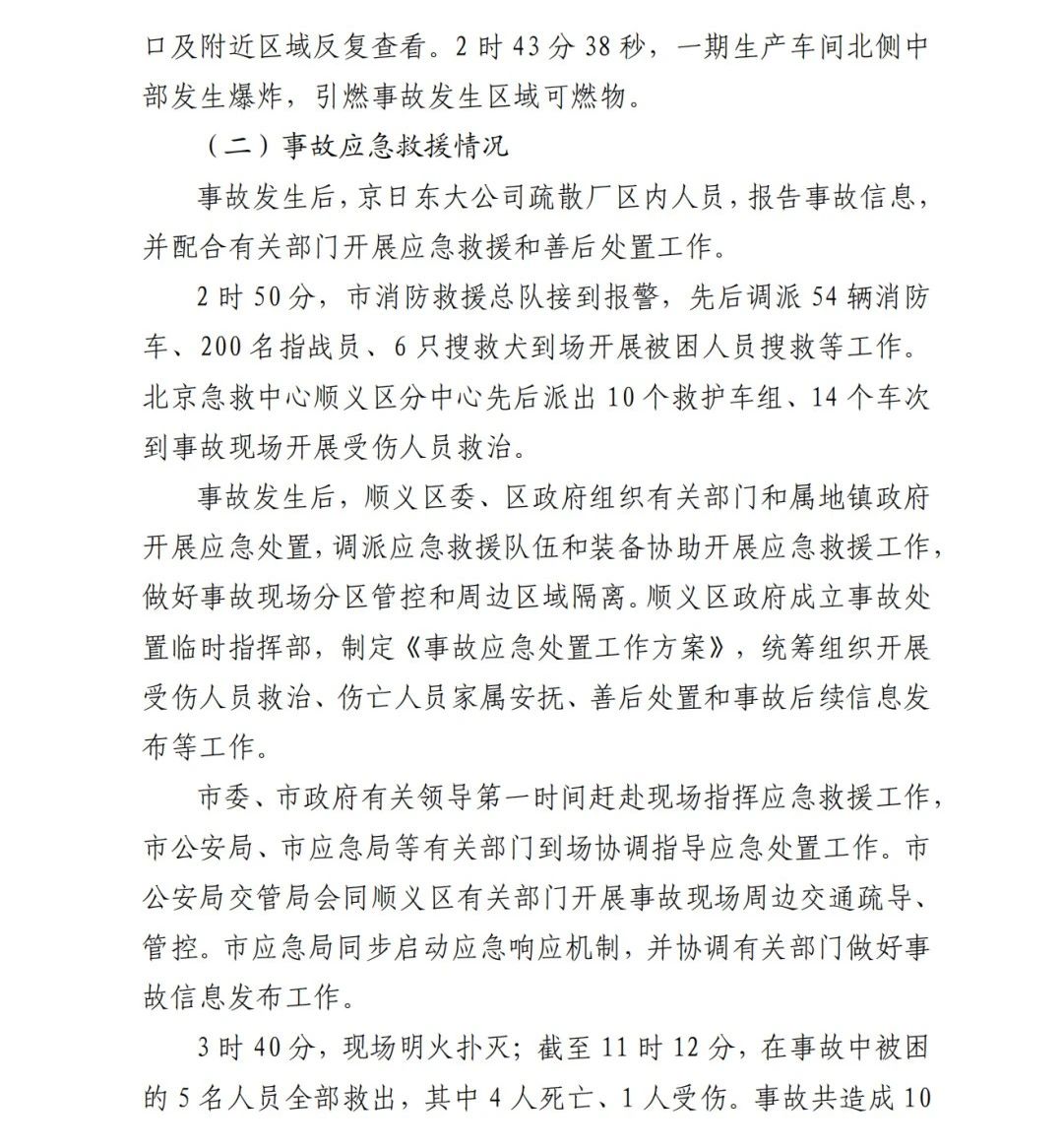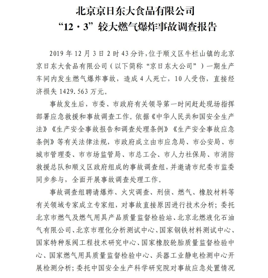 2019年12月3日2時(shí)43分許,北京順義區(qū)牛欄山鎮(zhèn)的(以下簡(jiǎn)稱(chēng)“京日東大公司”)一期生產(chǎn)車(chē)間內(nèi)發(fā)生燃?xì)獗ㄊ鹿?,造?人死亡,10人受傷,直接經(jīng)濟(jì)損失1429.563萬(wàn)元。
