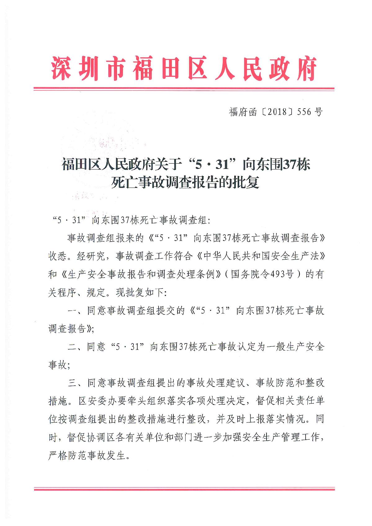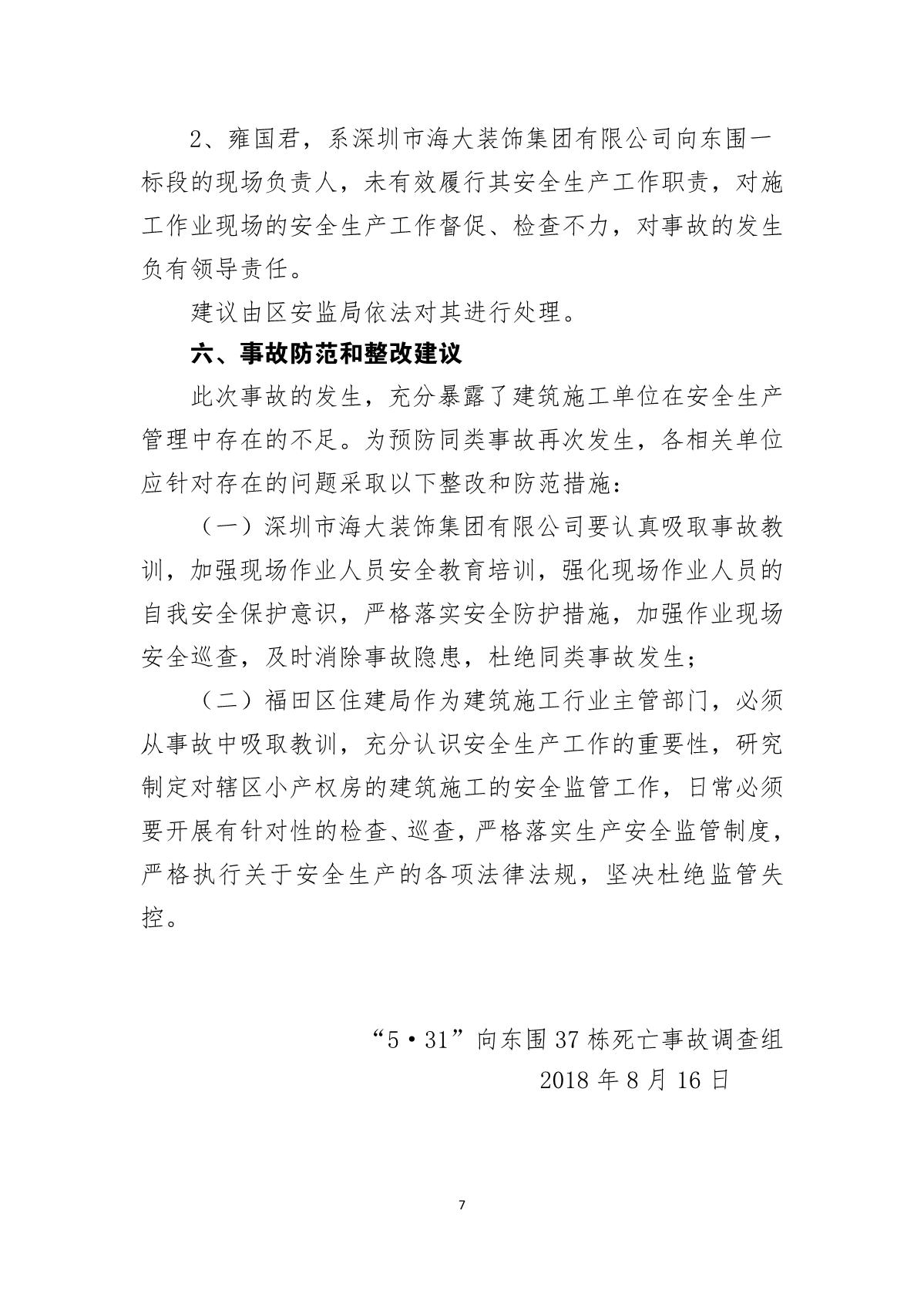 “5.31”向東圍37棟死亡事故調(diào)查報告