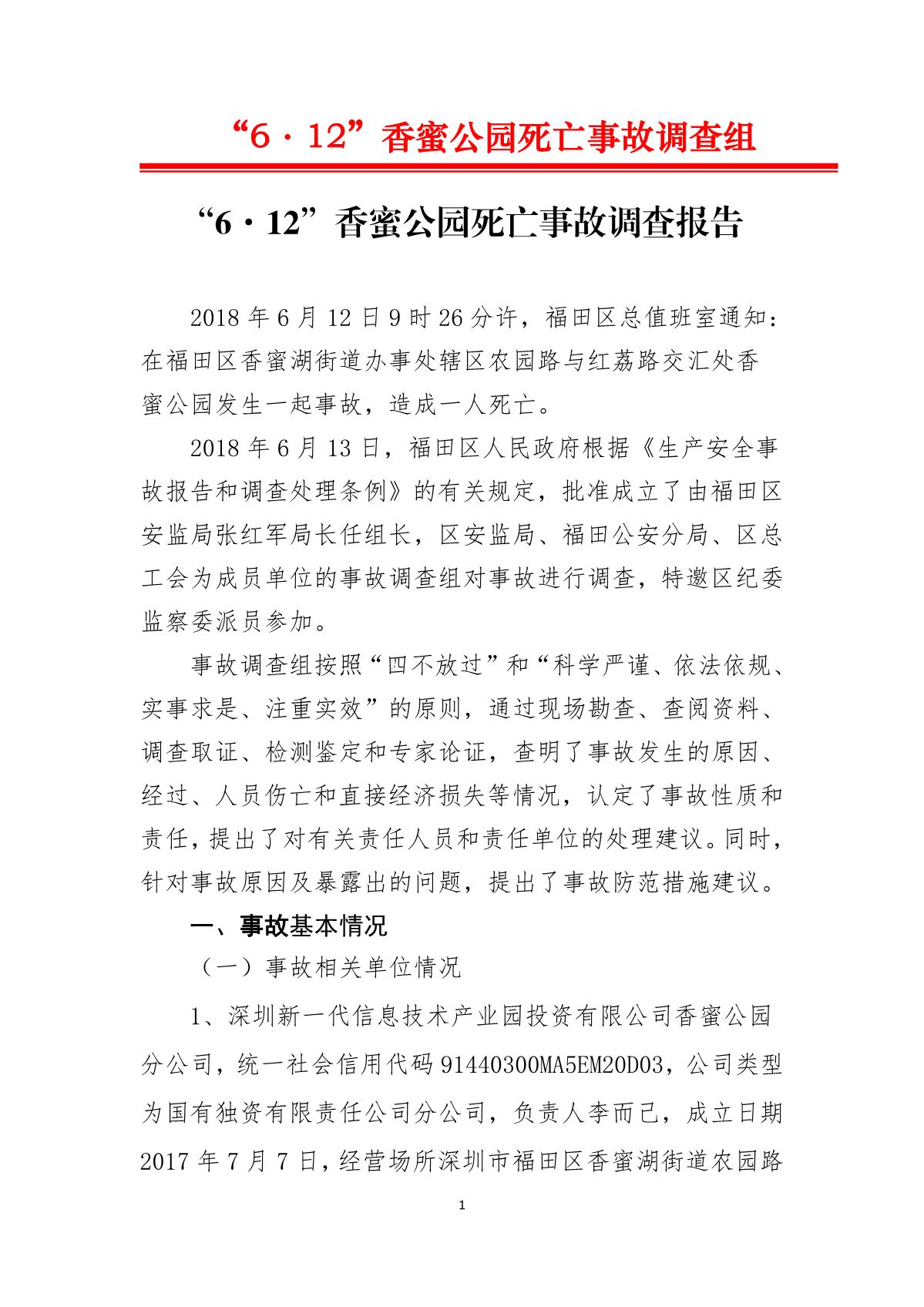 “6.12”香蜜公園死亡事故調(diào)查報告