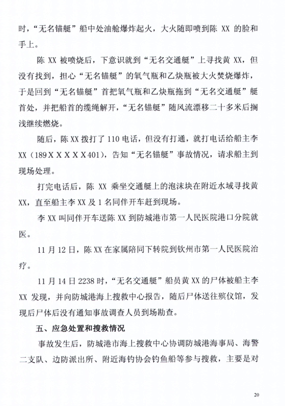 防城港“11.12“無名船舶爆炸事故調(diào)查報告