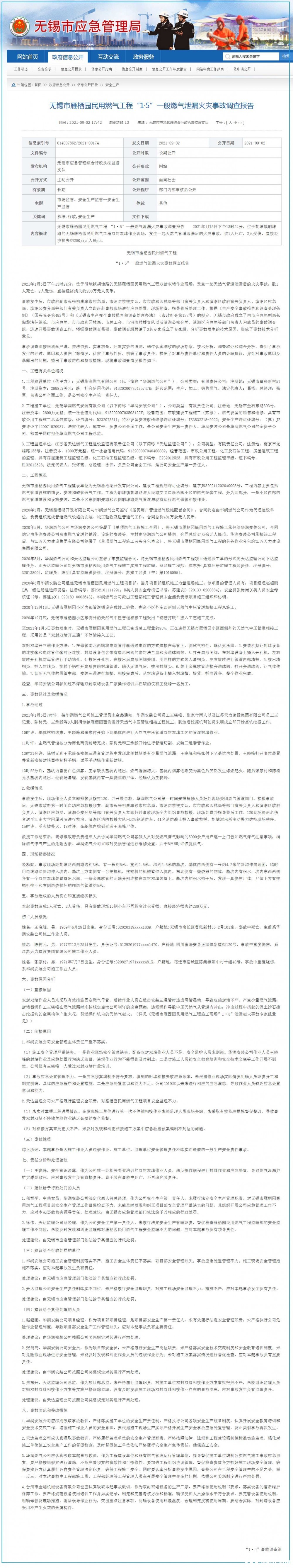 江蘇省無錫公布一起“挖爆燃?xì)夤艿馈笔鹿收{(diào)查結(jié)果