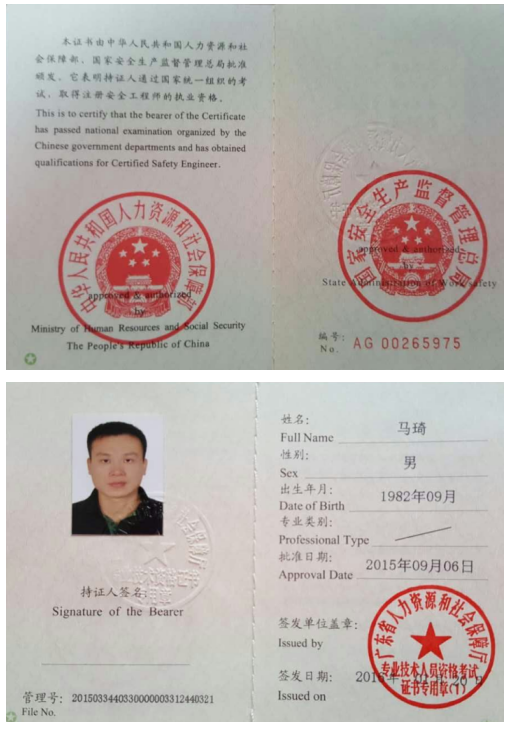 注冊(cè)安全工程師 | 馬琦 | 00265975 | 13590190919 | |