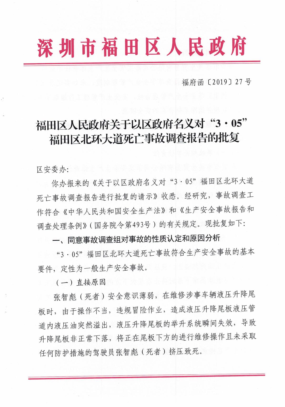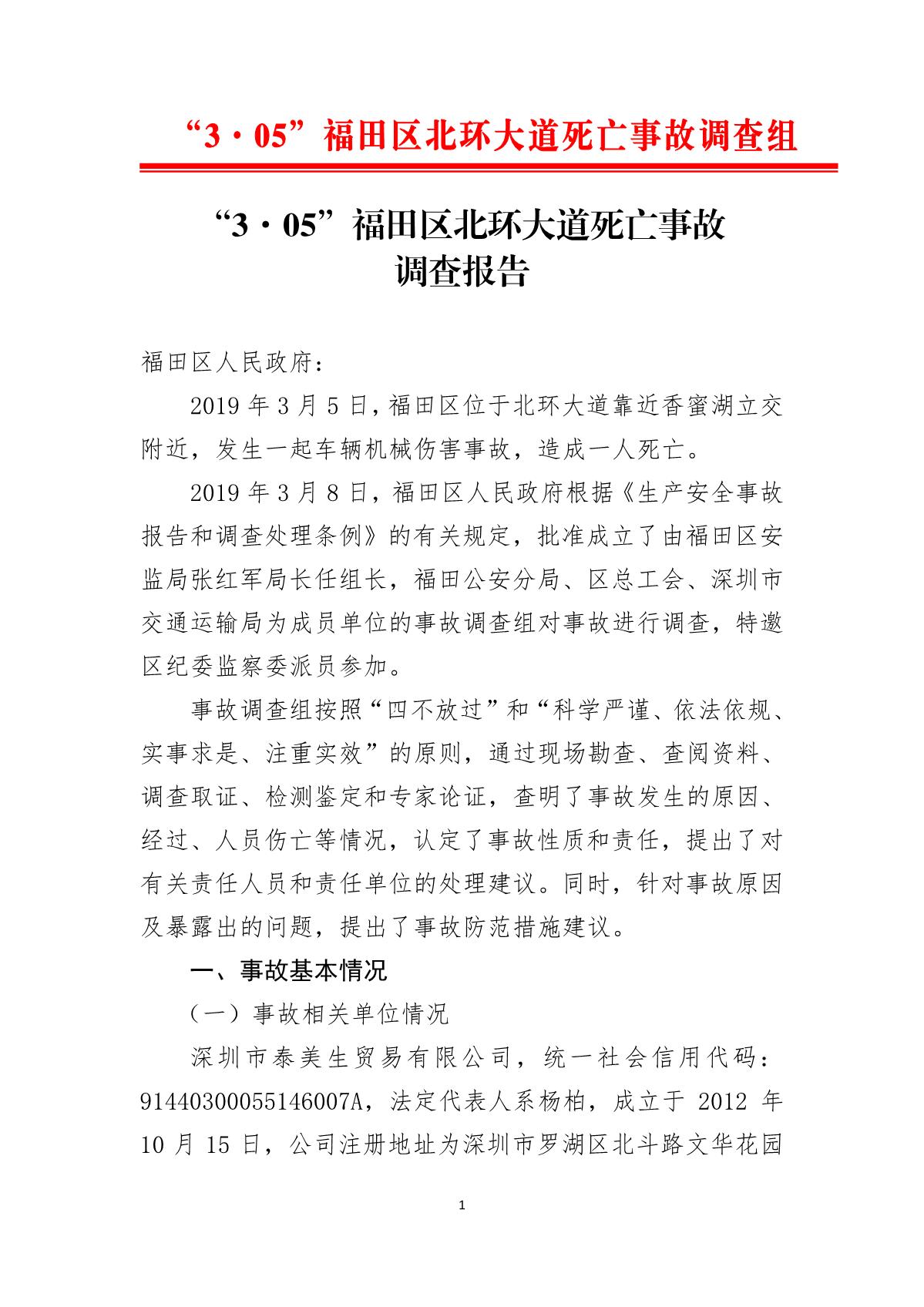 “3.05”福田區(qū)北環(huán)大道死亡事故調(diào)查報告
