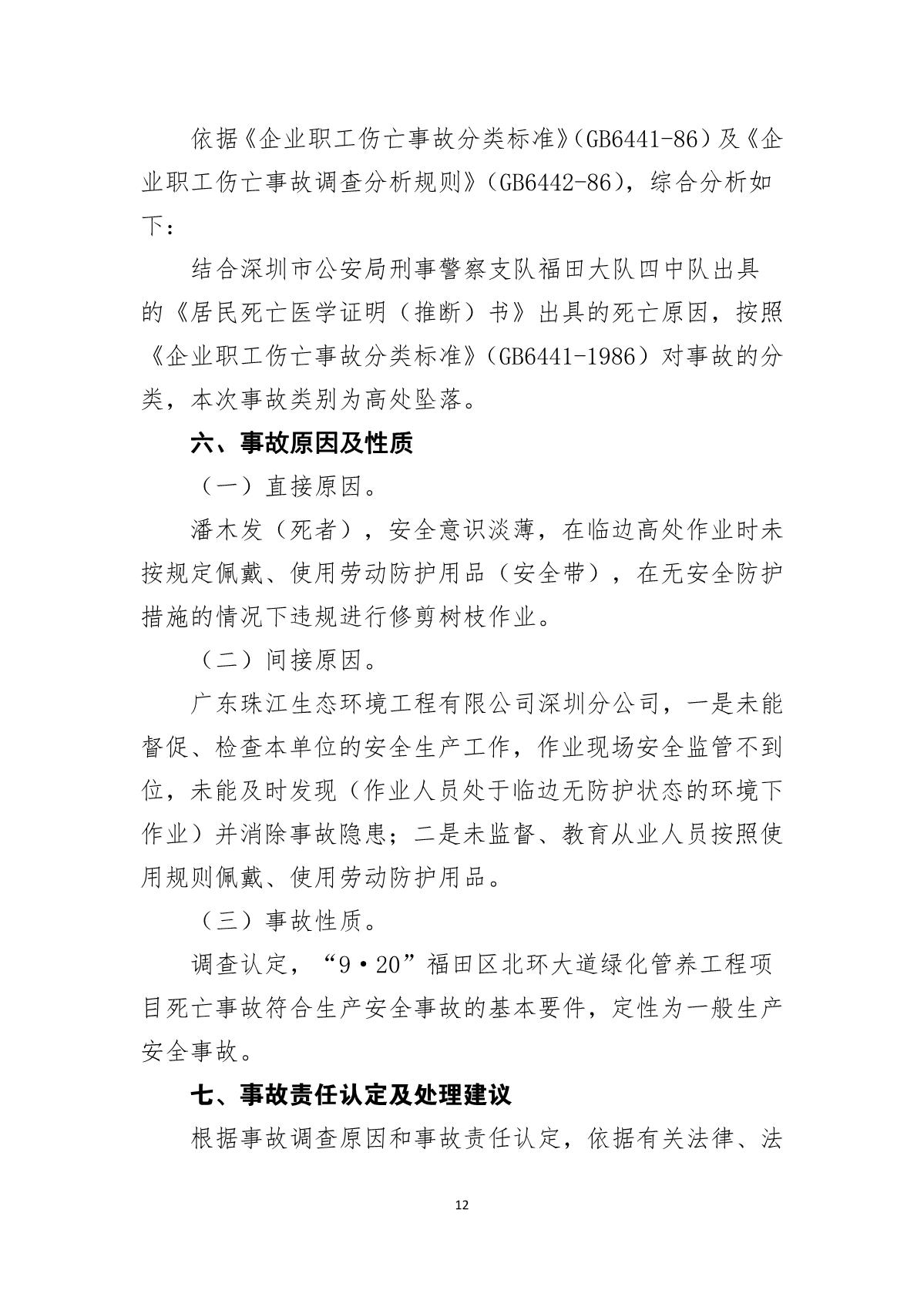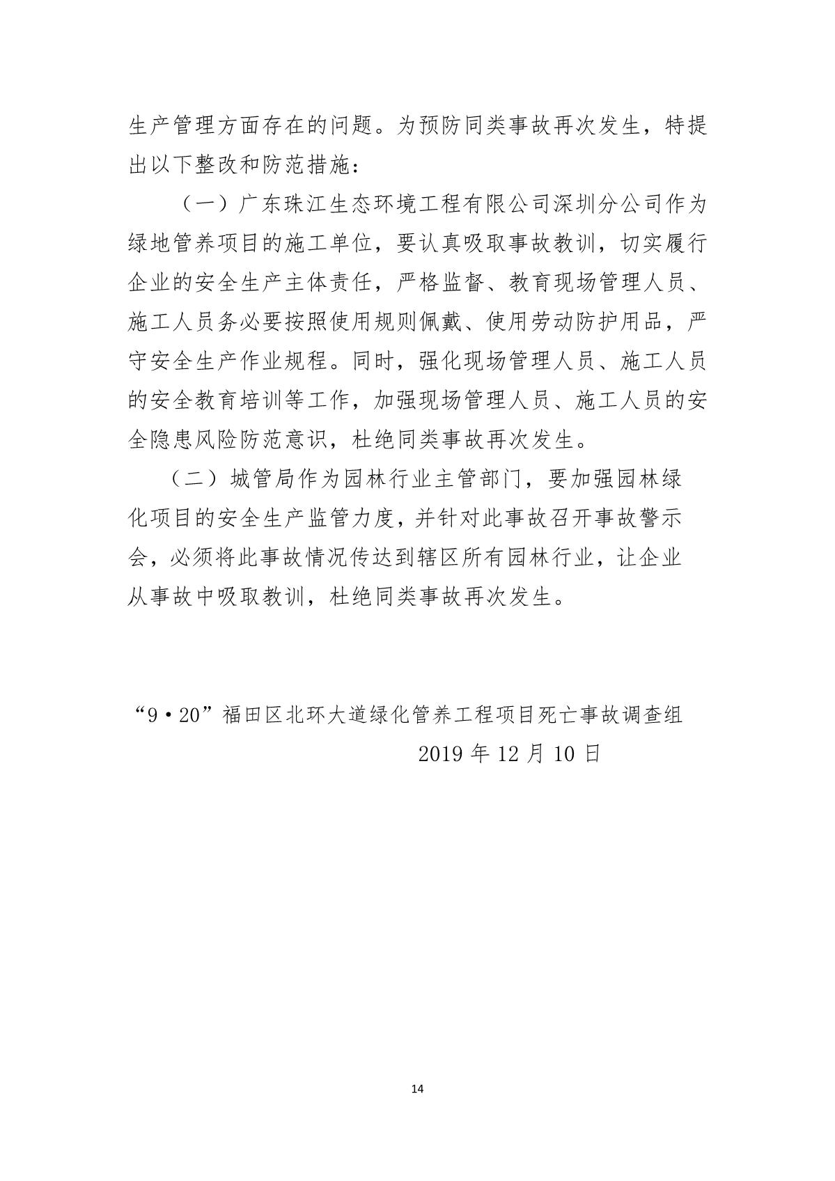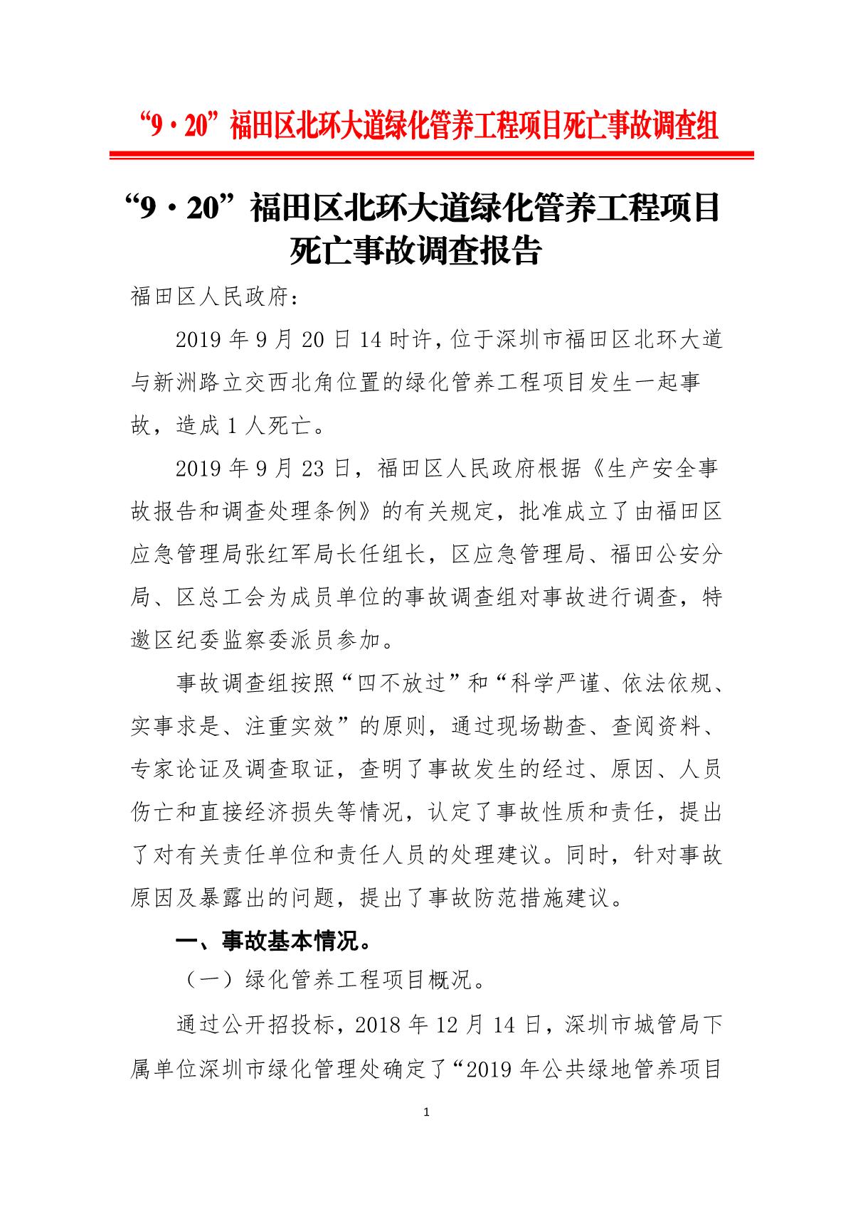 “9.20”福田區(qū)北環(huán)大道綠化管養(yǎng)工程項(xiàng)目死亡事故調(diào)查報(bào)告
