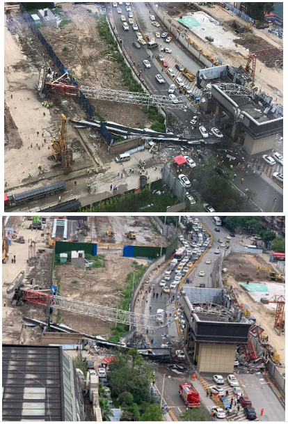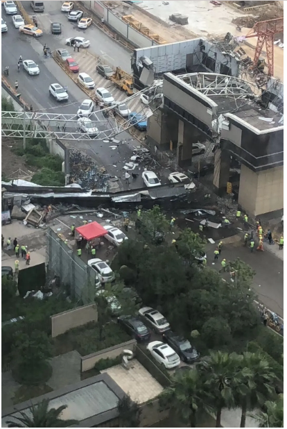 大臂造成非常嚴重的交通事故,下面來看履帶吊車身這邊的工地現(xiàn)場,從視頻上看,疑似是地面塌陷造成的事故(目前具體事故原因還在調(diào)查)
