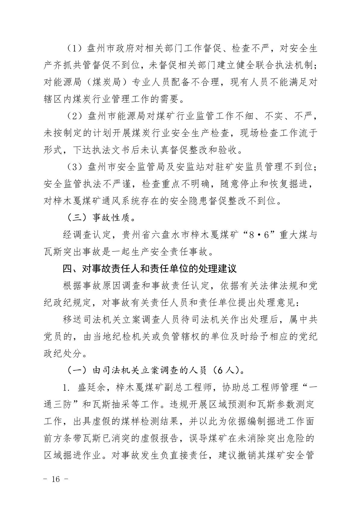 貴州六盤水梓木戛煤礦“8·6”重大煤與瓦斯突出事故調(diào)查報(bào)告