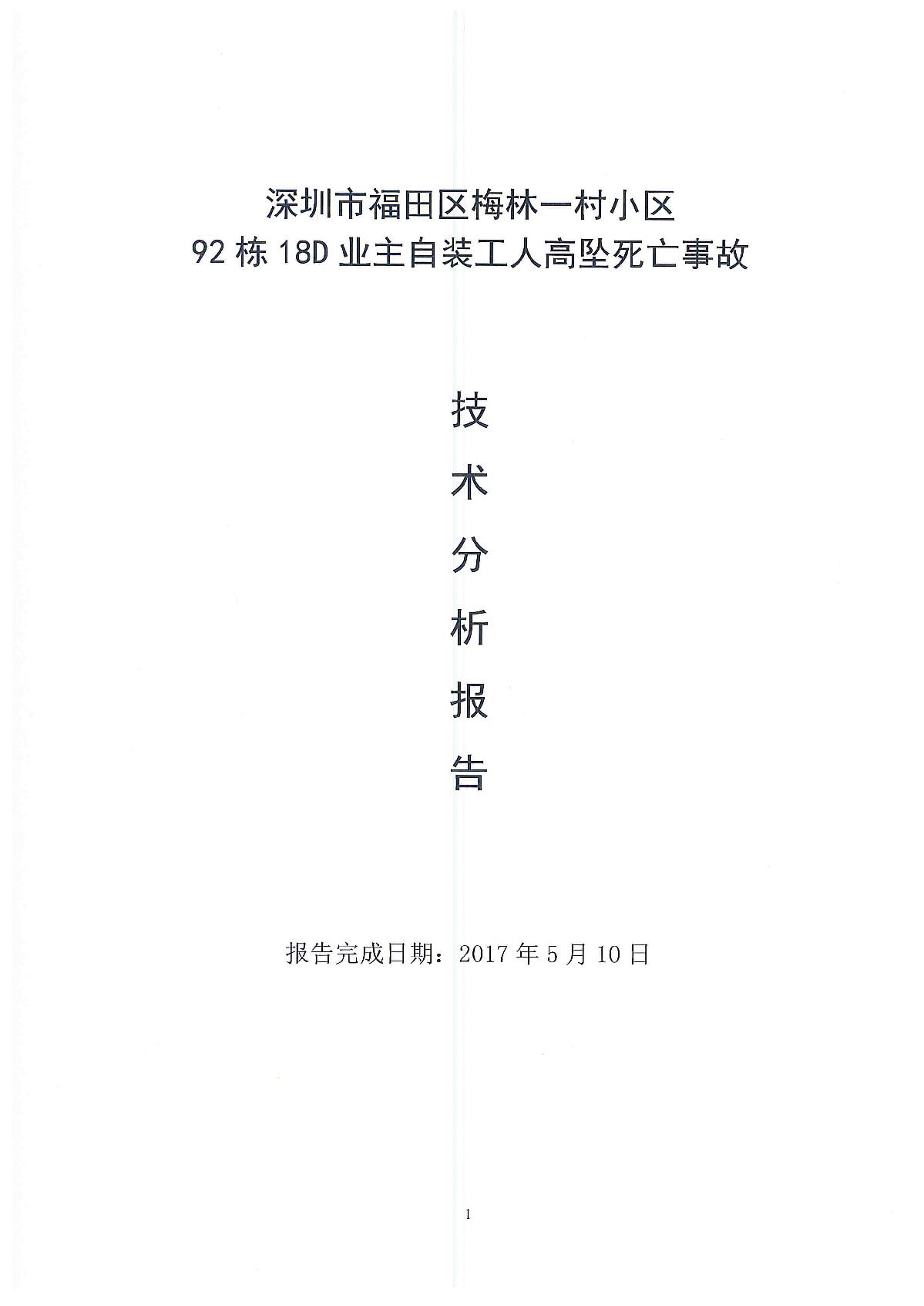 深圳市福田區(qū)梅林一村小區(qū)92棟18d業(yè)主自裝工人高墜死亡事故技術(shù)分析報(bào)告
