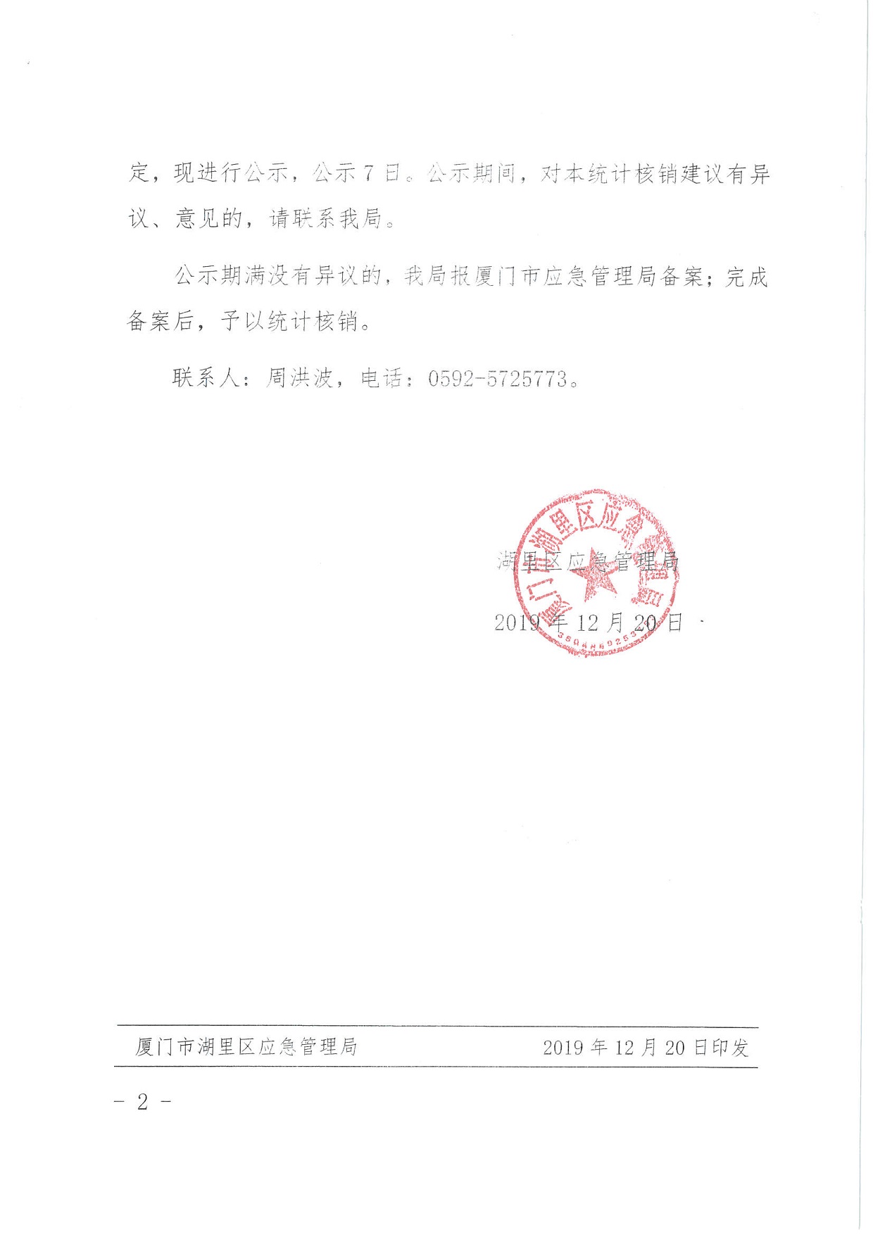 湖里區(qū)應急管理局關于建議對“4·8”廈門德易達土石方有限公司亡人事故進行統(tǒng)計核銷的公示