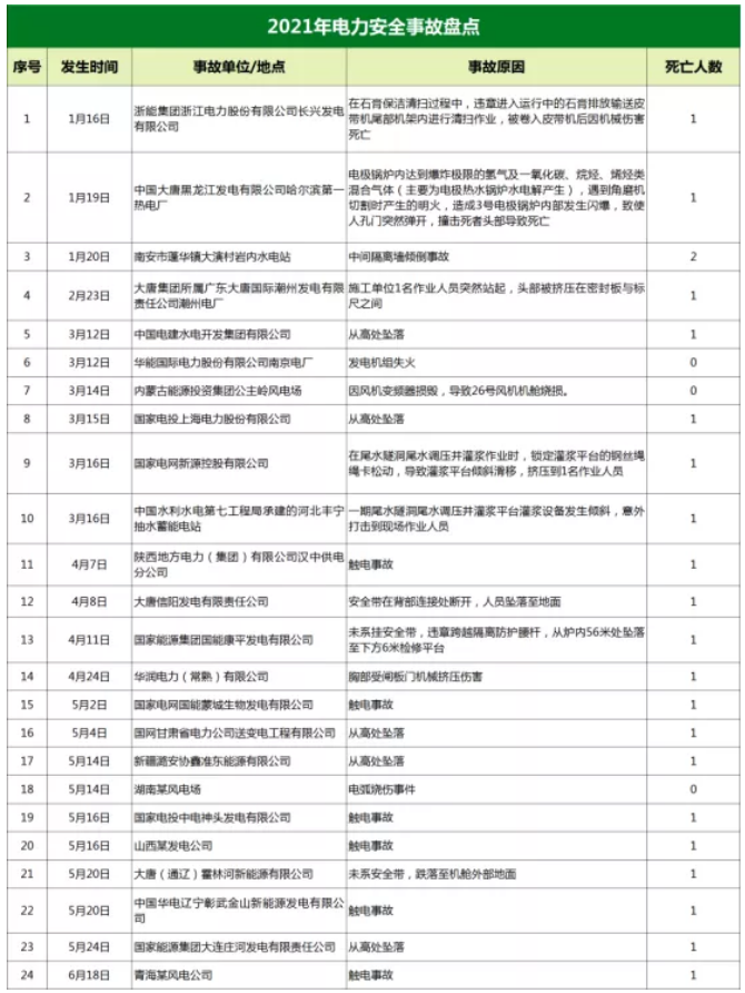 據國際能源網記者統(tǒng)計2021年至今已發(fā)生了24起電力安全事故,造成22人死亡,僅2021年5月全國發(fā)生電力人身傷亡就發(fā)生了事故9起、死亡8人。其中出事企業(yè)包括中國大唐、國家電網等大型電力企業(yè)。