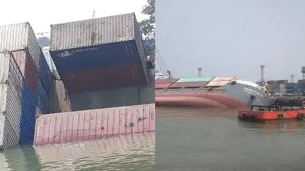 加爾各答港口官員報告說,這艘船于3月22日從印度薩加爾港抵達加爾各答,在3月24日上午剛剛完成裝載,總共裝載了165 個集裝箱,包括120個 20 英尺集裝箱和45 個 40英尺集裝箱。該船原定于今天啟程前往孟加拉國吉大港,然而突然在沒有任何征兆的情況下發(fā)生傾斜,并在15分鐘內(nèi)側(cè)翻和部分沉沒,導(dǎo)致集裝箱掉入港口。