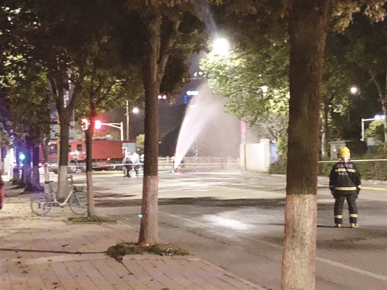 4月18日22:20,南京市建鄴區(qū)雨潤大街一輛渣土車進(jìn)入停車場右轉(zhuǎn)彎時,不慎車右后輪碾軋人行道旁綠化帶里的天然氣管道閥門,天然氣噴涌而出,呈水狀噴射,空中迅速彌漫著天然氣臭味。