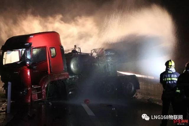消防救援人員介紹,由于事故車輛為LNG(液化天然氣)動力,事故導(dǎo)致LNG氣罐閥門變形泄漏,且LNG儲存罐處于滿載狀態(tài),如發(fā)生爆炸燃燒后果不堪設(shè)想。根據(jù)現(xiàn)場情況,救援人員決定采取放空稀釋的方法進(jìn)行處置。隨后,救援行動展開,一是高速交警立即對該路段進(jìn)行封鎖,實施現(xiàn)場警戒;二是消防救援人員利用開花水槍、泡沫槍分別對氣罐泄漏點及周邊進(jìn)行稀釋覆蓋,防止發(fā)生次生災(zāi)害。同時,救援人員調(diào)集大型吊車和裝載車對事故車輛進(jìn)行起吊拖離。