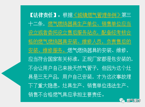 2、事故受害方責(zé)任追究過程中需要考量的內(nèi)容包含但不限于:燃?xì)夤驹谥脫Q通氣時是否履行了安全宣傳教育;燃?xì)夤臼欠衩磕甓既霊舭矙z并對燃?xì)怆[患提出整改意見;燃?xì)夤景惭b燃?xì)庠睢⑷細(xì)鈭缶骱碗姶砰y是否符合國家規(guī)范;燃?xì)夤咎峁┑娜細(xì)庠睢⑷細(xì)鈭缶骱碗姶砰y是否質(zhì)量合格;其他需要注意的問題。