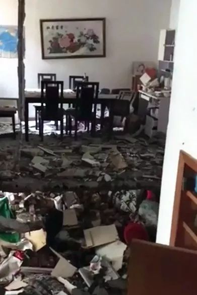 強大的沖擊力使得上方樓板斷裂